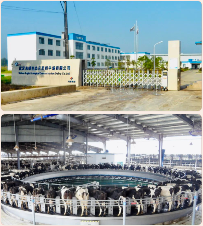 武汉光明生态示范奶牛场(光明牧业武汉牧场)坐落在武汉市东西湖区辛安渡农场内,于2014年10月开始陆续投产,目前存栏约3050头。武汉牧场先后荣获“中国良好农业规范认证证书”“国家奶业科技创新联盟奶源示范基地”“优质乳工程示范牧场”,是一个以“高产、高效、优质、生态”为目标,在技术、管理、产量、质量上均为一流的标准现代化示范牧场。