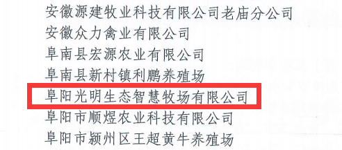 近日,安徽省阜阳市农业农村局公布2023年度市级畜禽养殖标准化示范场名单,光明牧业旗下阜阳光明生态智慧牧场榜上有名。