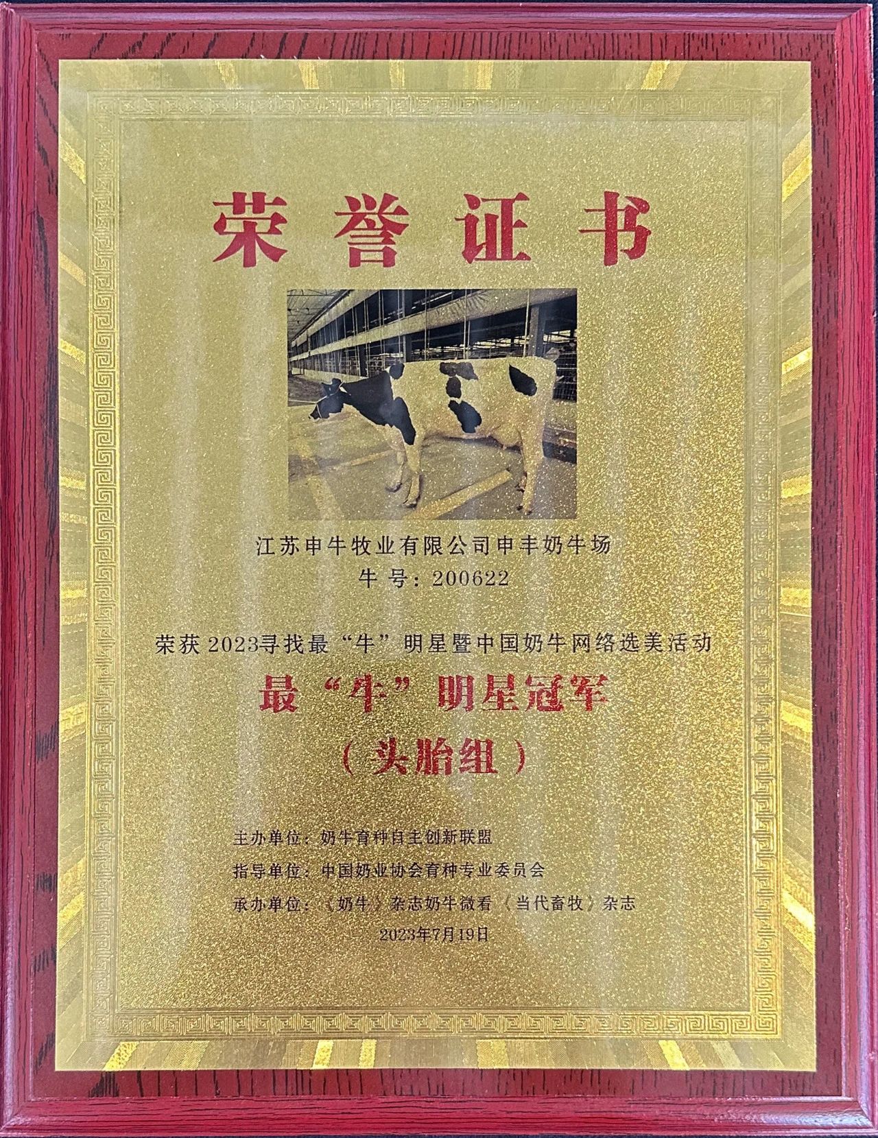 2023年7月19日,寻找最“牛”明星暨中国奶牛网络选美颁奖典礼在第十四届中国奶业大会育种专业委员会专场论坛隆重举行,光明牧业再获佳绩,累计斩获4项殊荣,其中自主培育奶牛“200622”获头胎组冠军。