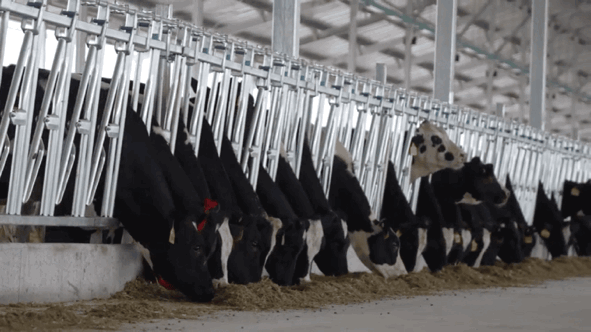 在徐小牧场工作人员有条不紊的组织下,每位员工各司其职,车辆消毒、车辆指挥、卸牛、赶牛、备料、记录等进牛工作有序进行。随着车门打开,黑白花牛牛们陆续从拉运车沿着通道步入宽敞明亮的牛舍,发料车随即发放营养可口的餐食,让风尘仆仆的牛牛们,大快朵颐,哞哞声此起彼伏,像是在表达对新家的喜爱。