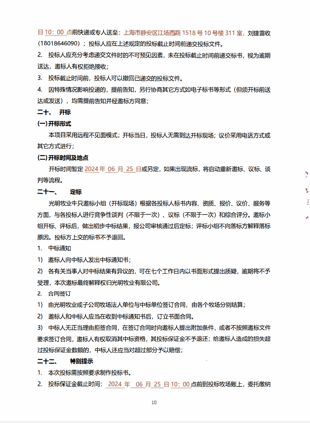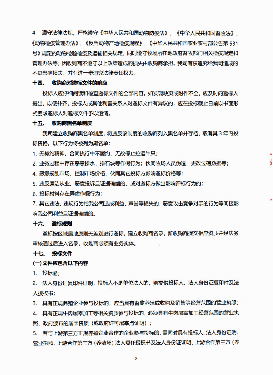 附件:(二次)光明牧业有限公司2024年第三季度无饲养价值牛只出售邀标书