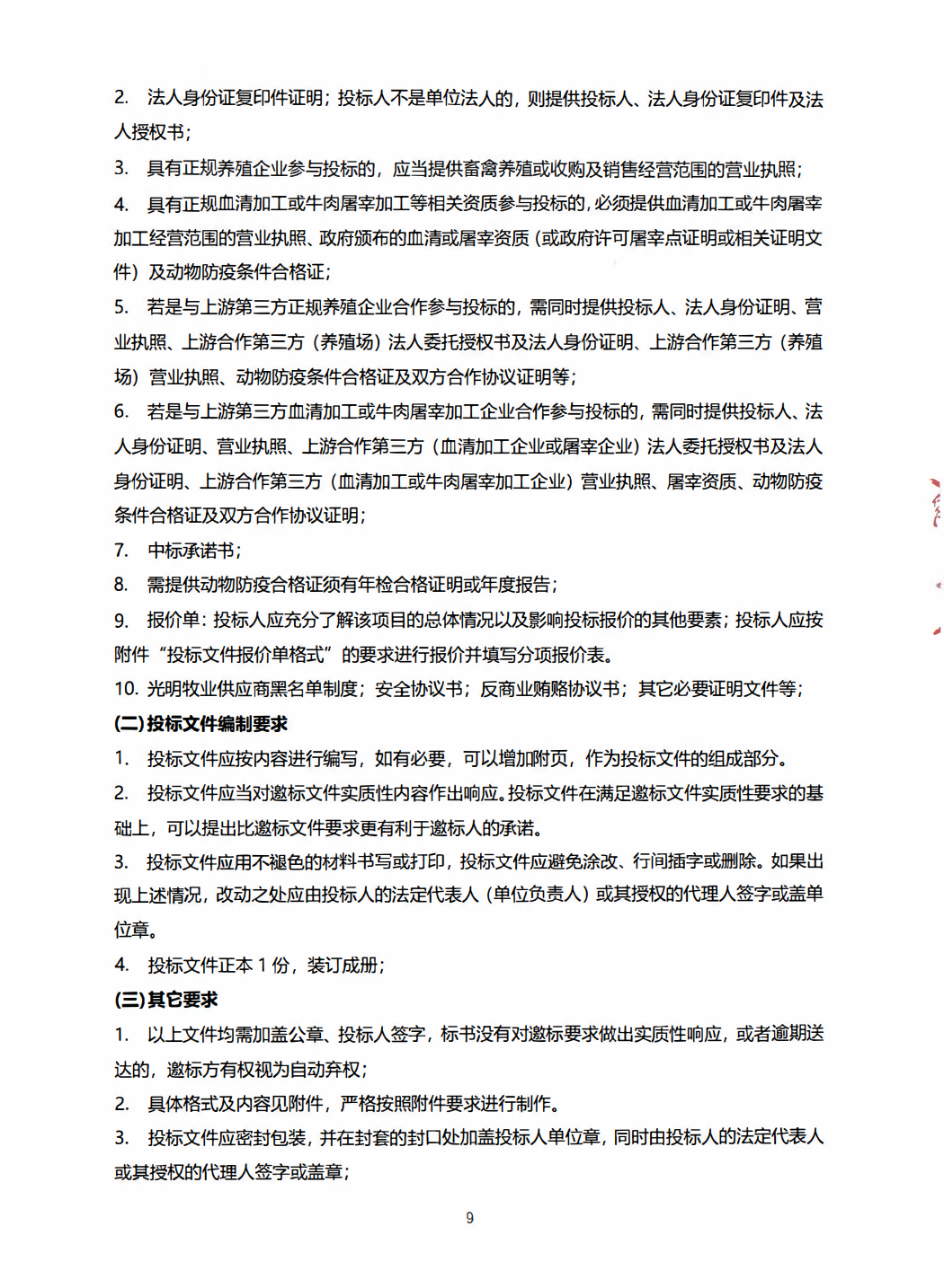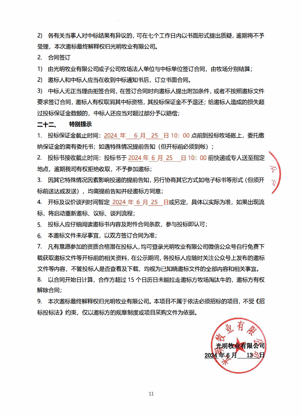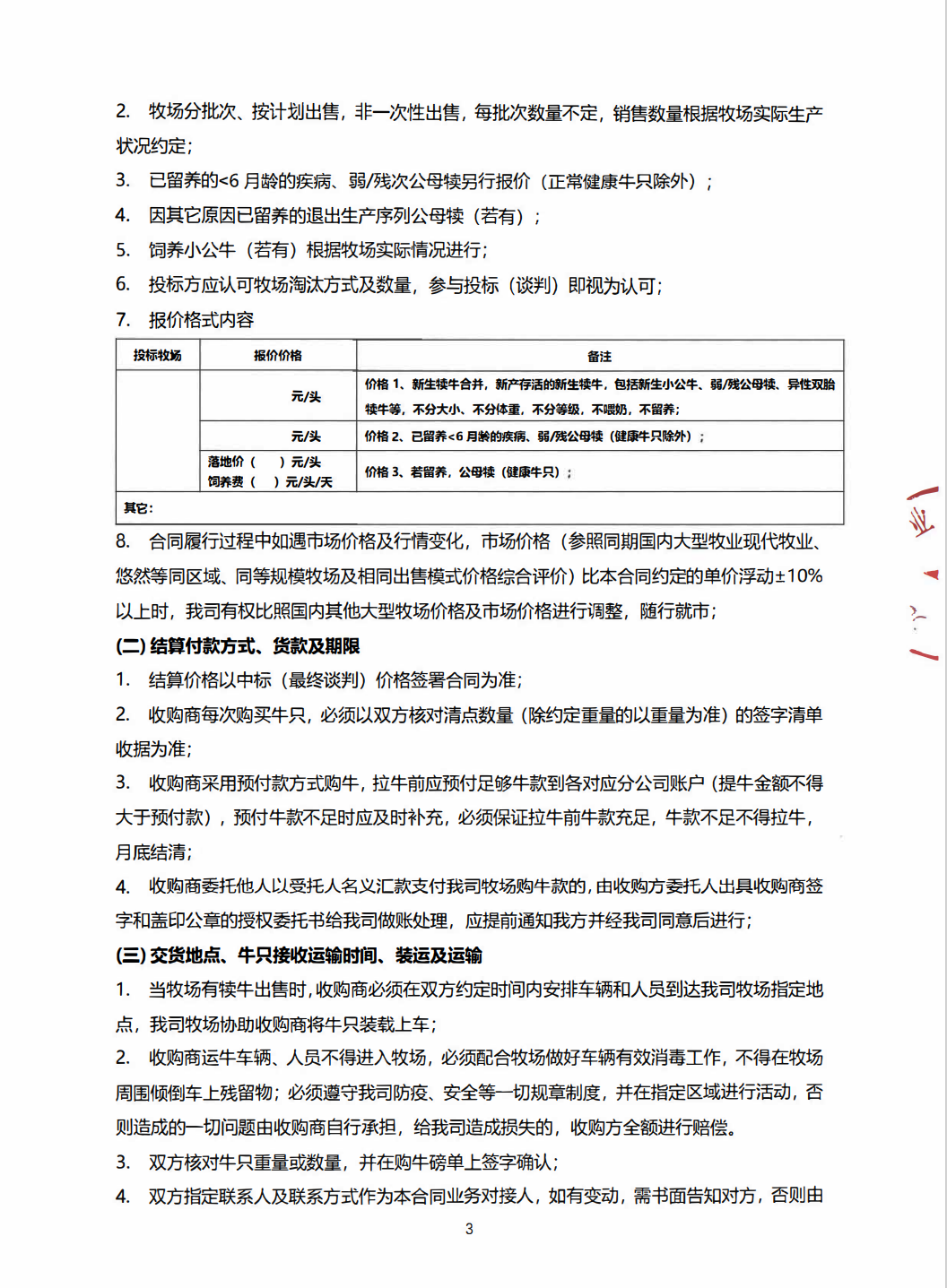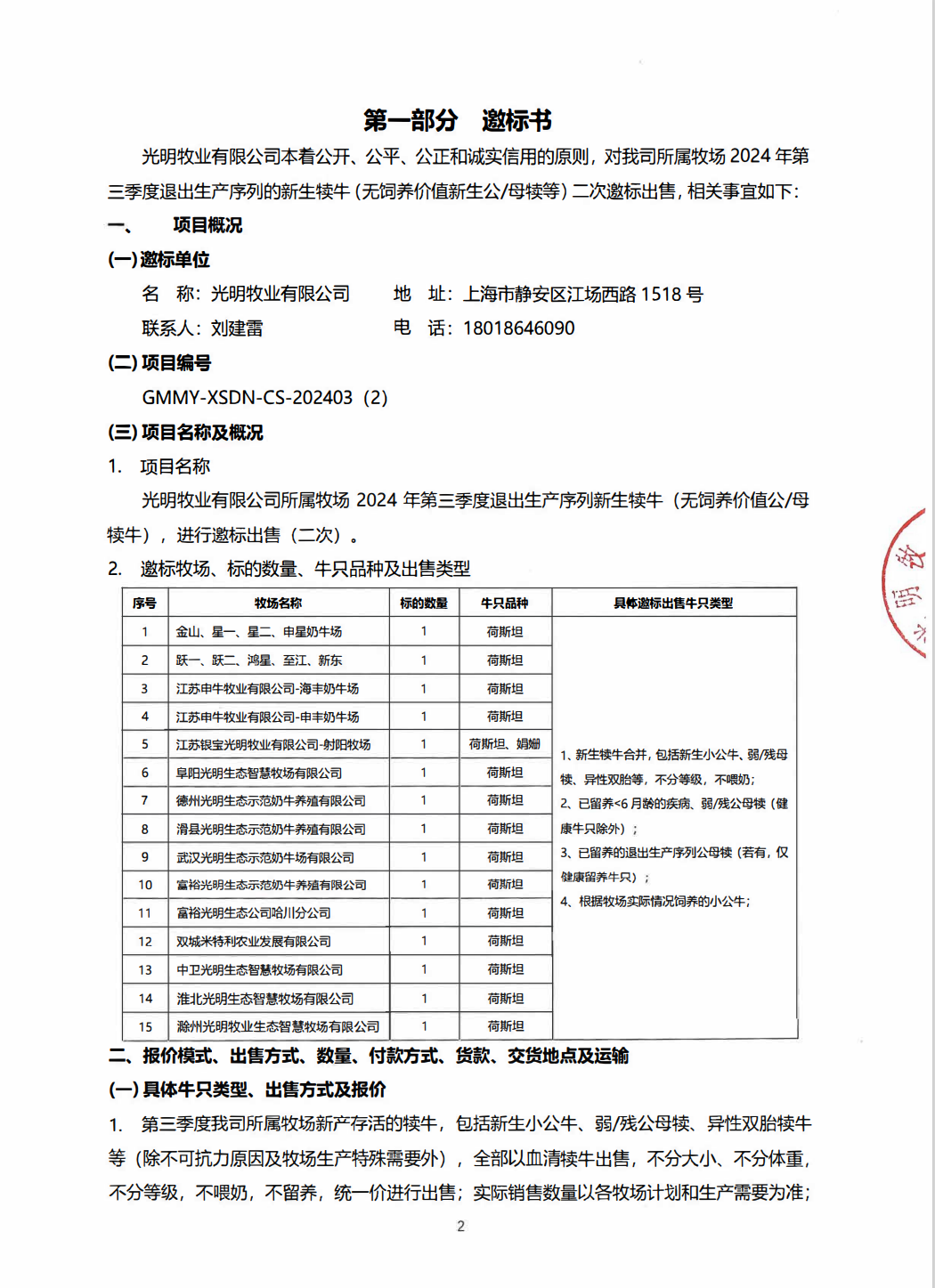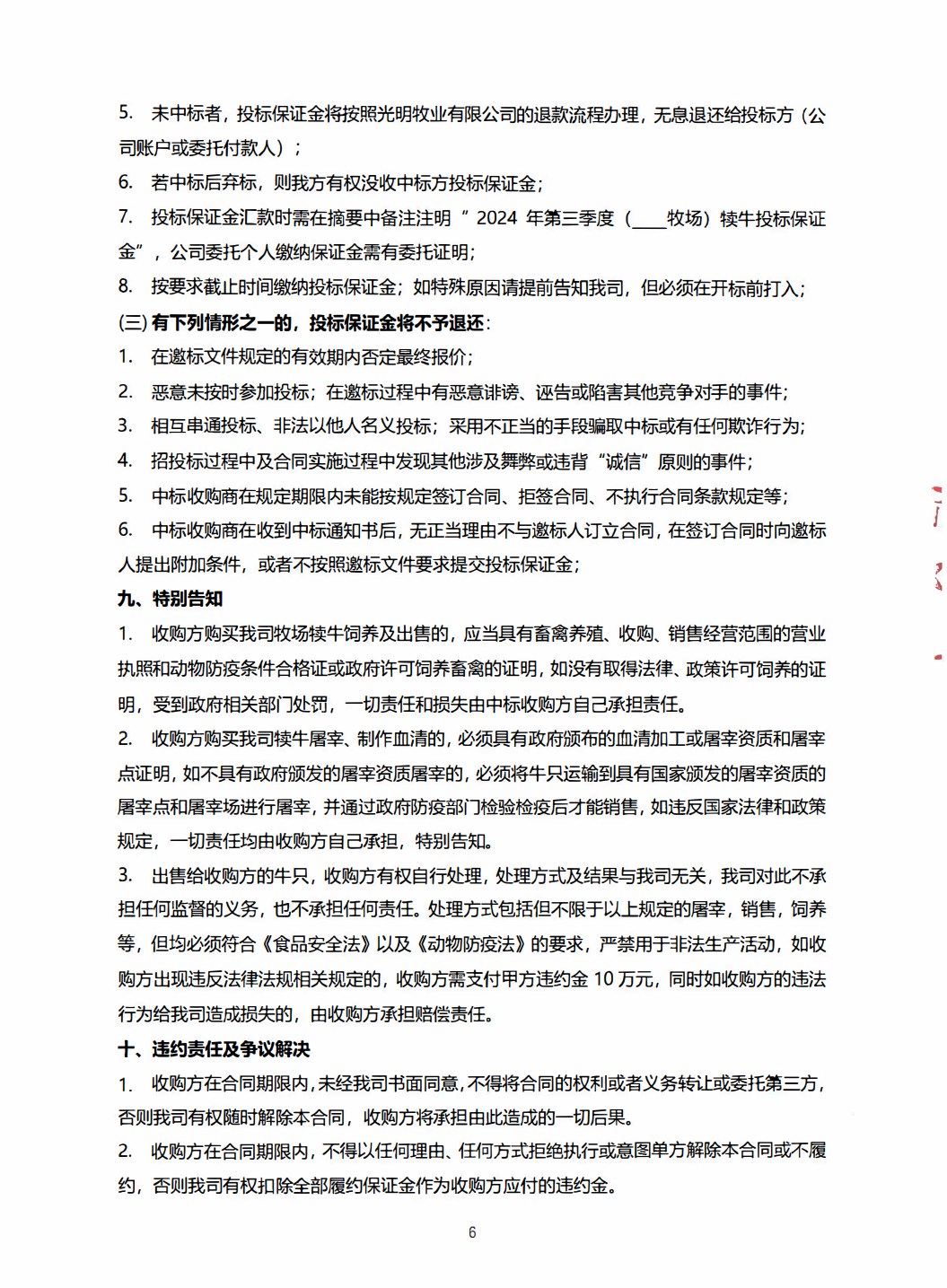 附件:(二次)光明牧业有限公司2024年第三季度犊牛(无饲养价值公母犊)出售邀标书