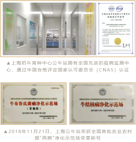 上海奶牛育种中心公牛站认真贯彻“好种好牛,质量一流”的方针,在“布病”“结核”净化方面高度重视:种牛来源坚持在公司内部“核心育种场”自繁自养,自主培育,实现内清外阻,切断病源;积极开展净化工作管理体系建设,建立规范的防疫制度及应急预案,不断完善疫病防治规程,做到“有落实、有执行、有监督,有跟踪”;拥有全国先进的疫病监测中心,通过中国合格评定国家认可委员会(CNAS)认证,定期对种公牛进行严格监测,为疫病净化工作提供了专业保障。