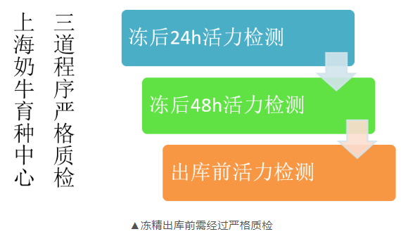 冻精在出库前,需严格执行三道质检程序:冻后24h活力检测、冻后48h活力检测、出库前活力检测,确保每一支出库冻精的高活性、高品质。