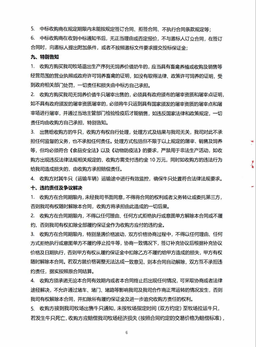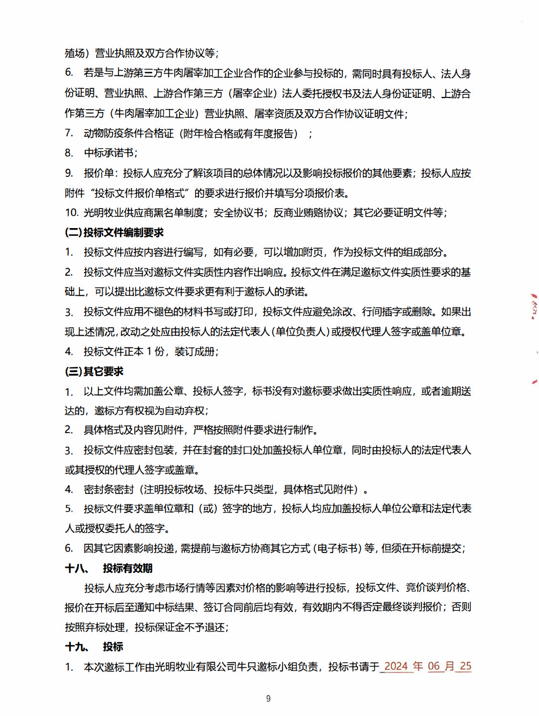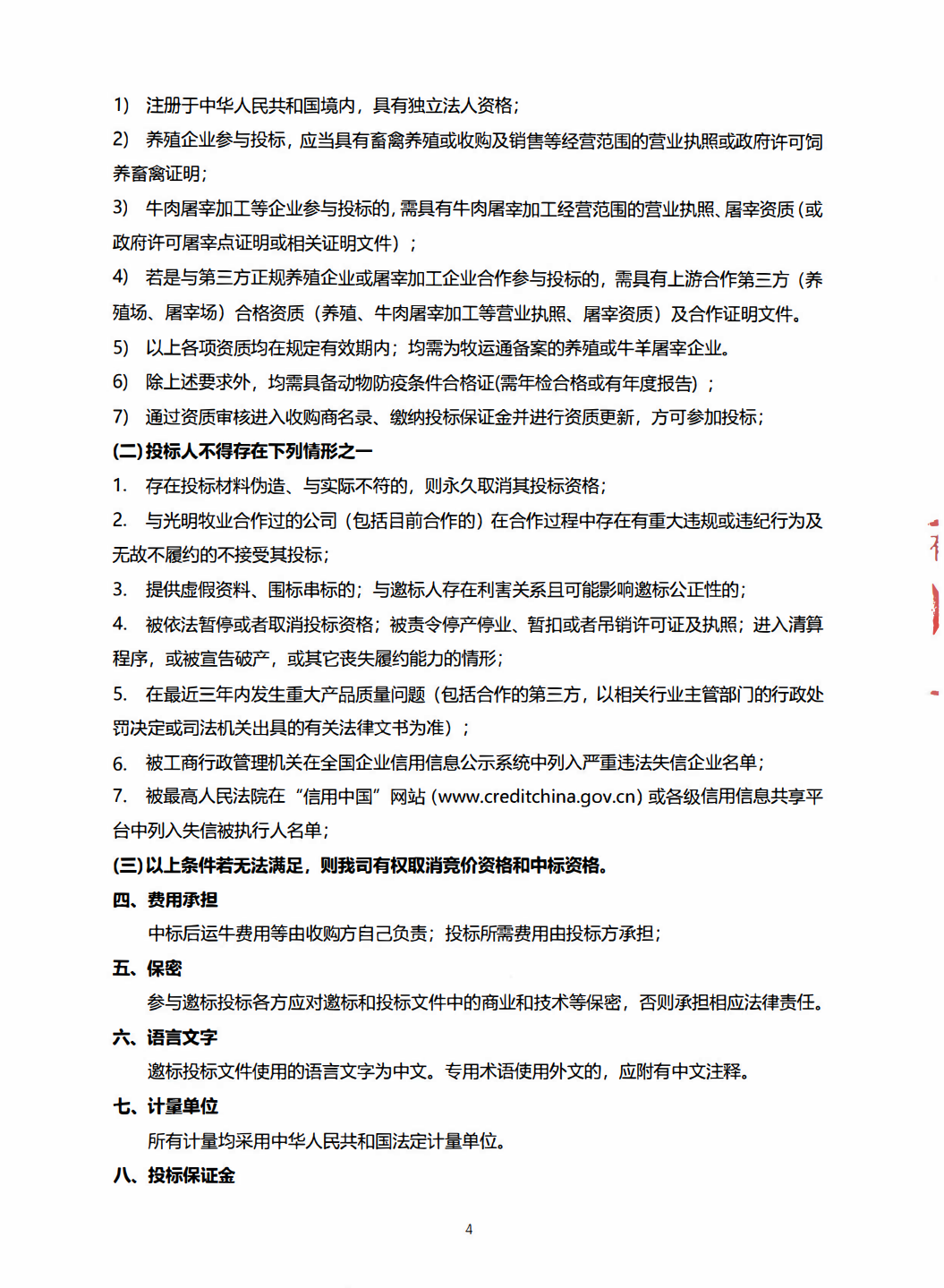 附件:(二次)光明牧业有限公司2024年第三季度无饲养价值牛只出售邀标书